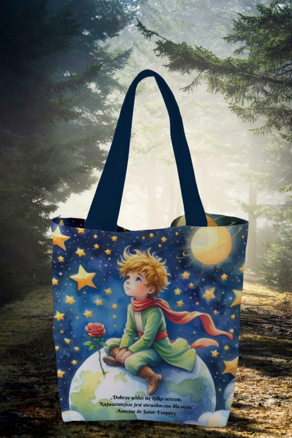 Wyjątkowa torba inspirowana książką Mały Książę. Jeżeli szukasz pięknego prezentu z wartościowym cytatem, to nasza propozycja torby będzie świetnym pomysłem.